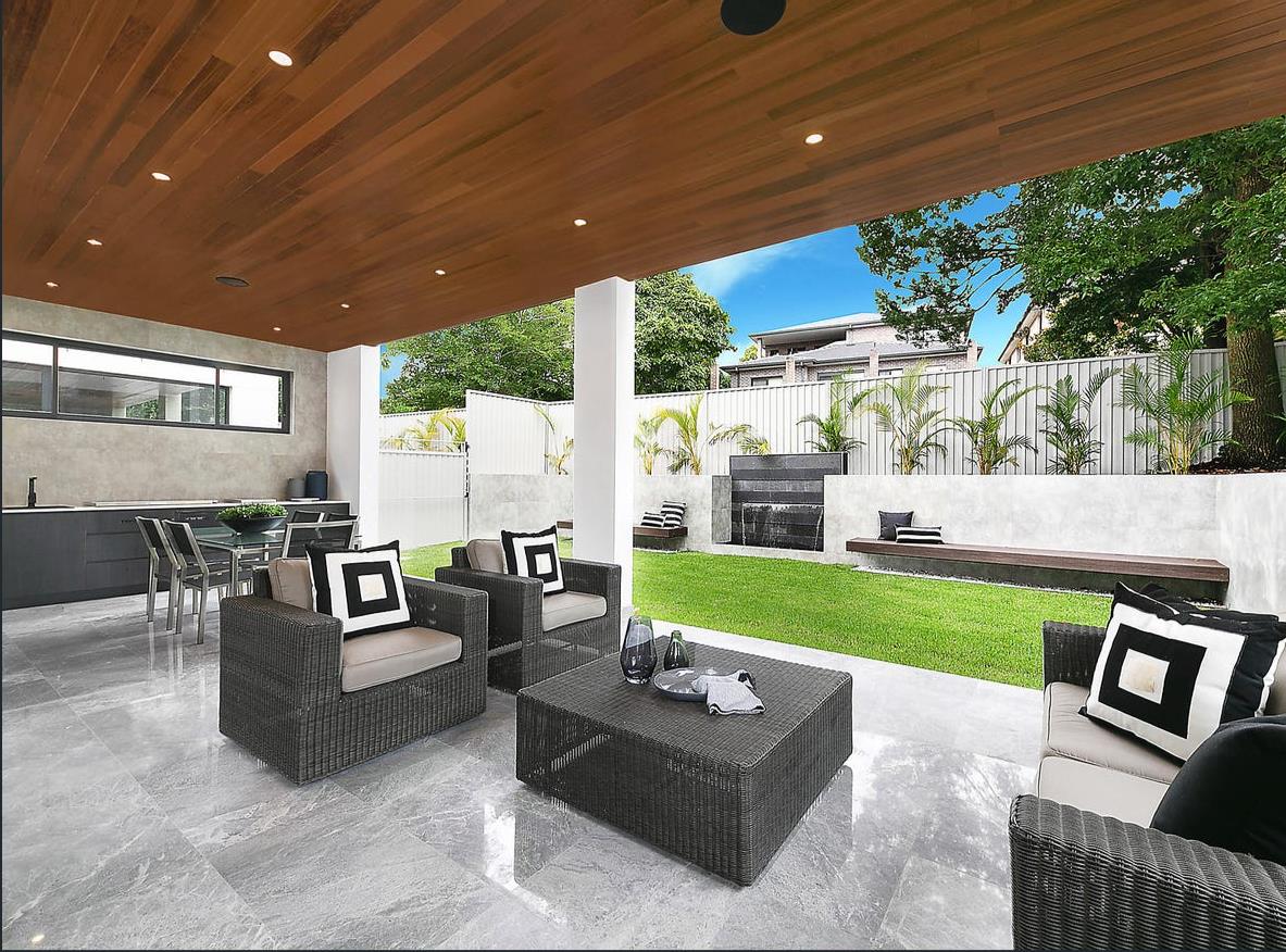 - Luxury outdoor entertaining area with cedar cladding ceiling
